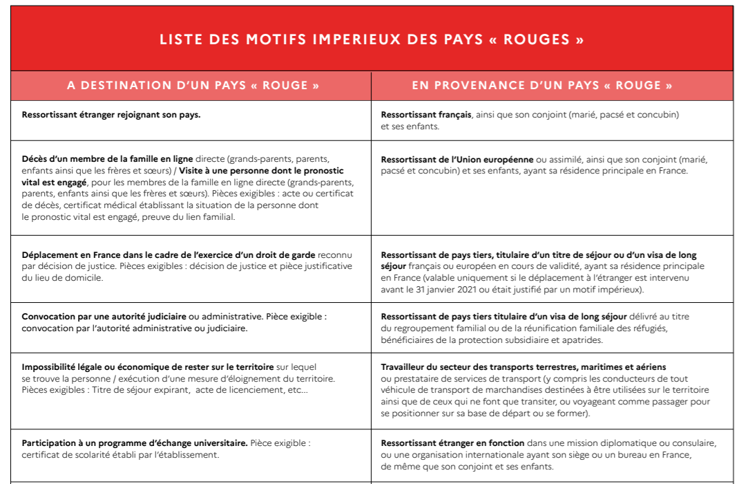 Par ailleurs, ça se complique pour les départs et les arrivées depuis un pays classé en liste rouge. Cette liste rouge, comprend des pays comme l’Afrique du Sud, le Brésil ou l’Inde et la Turquie le virus circule de façon assez active, où il y a parfois des variants préoccupants.
