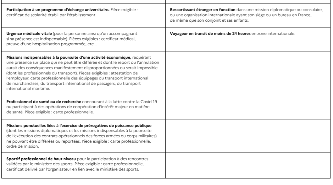 Concernant le départ, les binationaux ont la possibilité de voyager sans restriction. Le conseil constitutionnel ayant invalidé l’interdiction pour ces personnes, les Turcs de France peuvent se rendre en Turquie. Malheureusement ceux qui n’ont pas la nationalité turque devront impérativement présenter un motif impérieux autre que le tourisme.